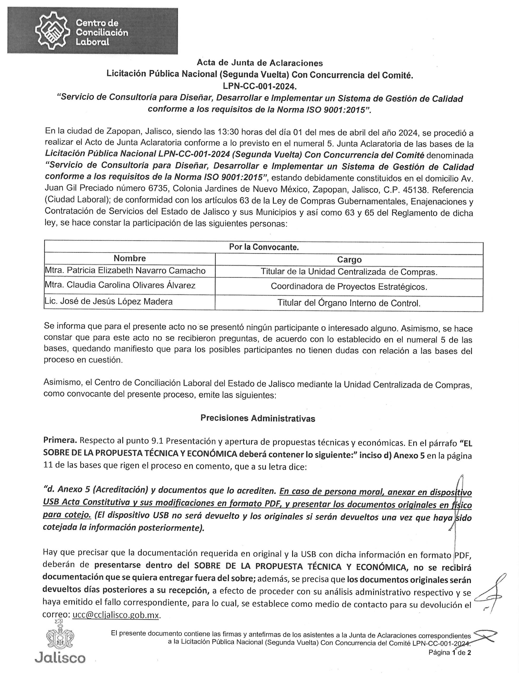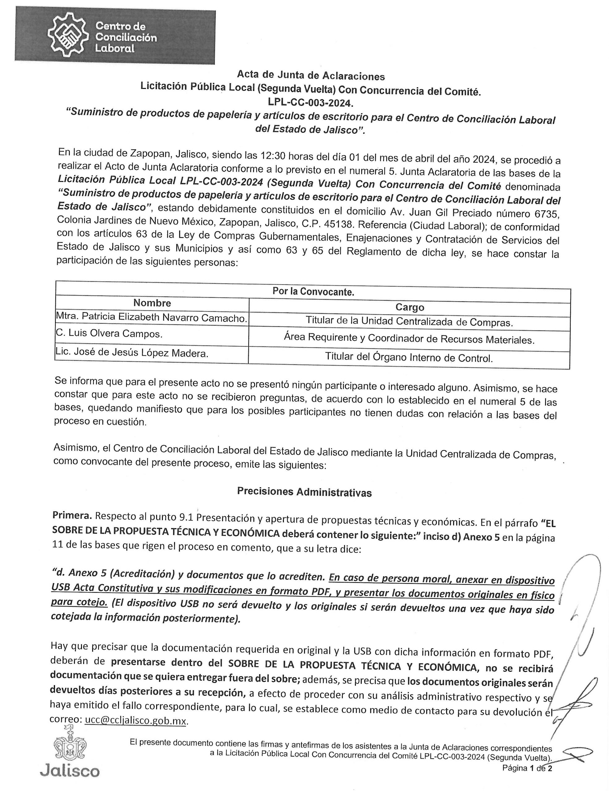 “Adquisición de Material de Papelería y Artículos de Oficina para el Centro de Conciliación Laboral del Estado de Jalisco”.
